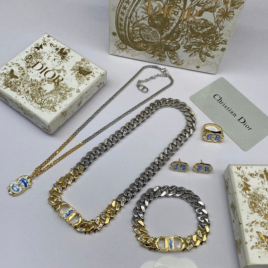 18K CD Icon Chain Link Blue White Resin Bracelet