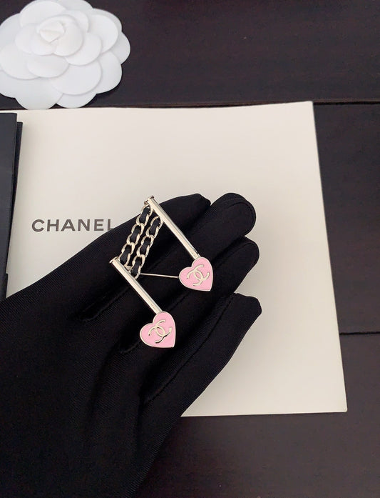 18K CC Heart Star Chain Brooch