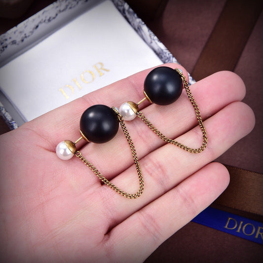 18K CD Tribales Black Resin Pearl Earrings