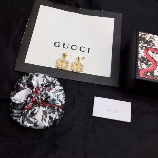 18K Double G Square Pearls Earrings