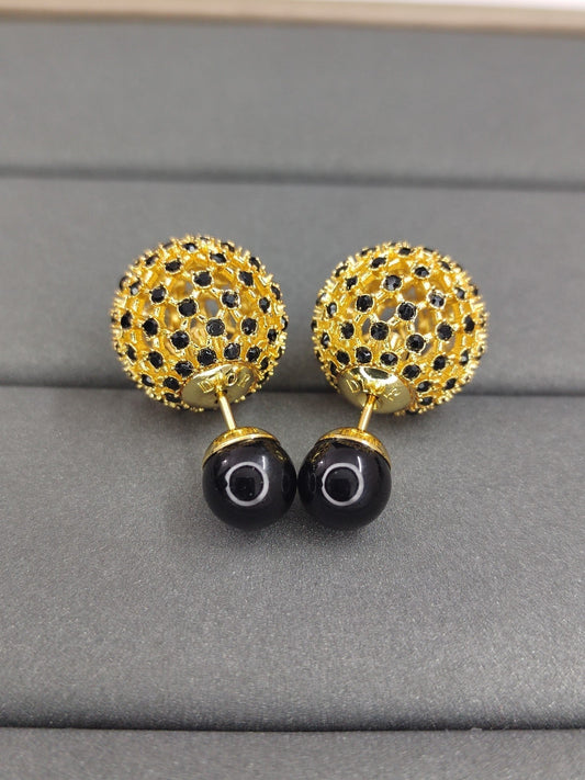 18K CD Tribales Black Stone-Effect Resin Pearls Earrings