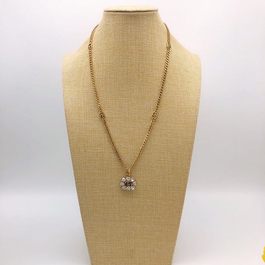 18K Double G Logo Plaque Embellished Pearl Necklace