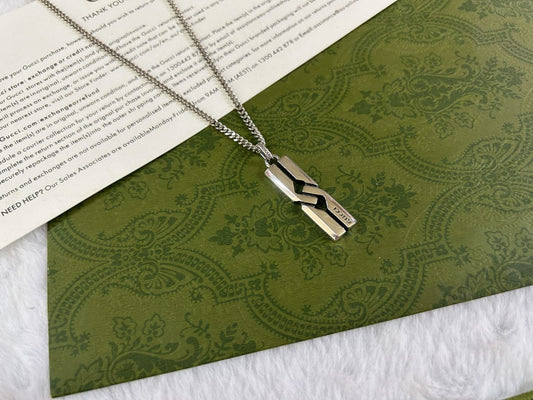 18K Double G Interlocking G Heart Lightning Charm Necklace