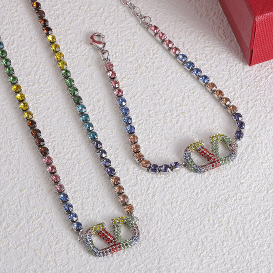 18K Vlogo Multi-Color Crystals Necklace