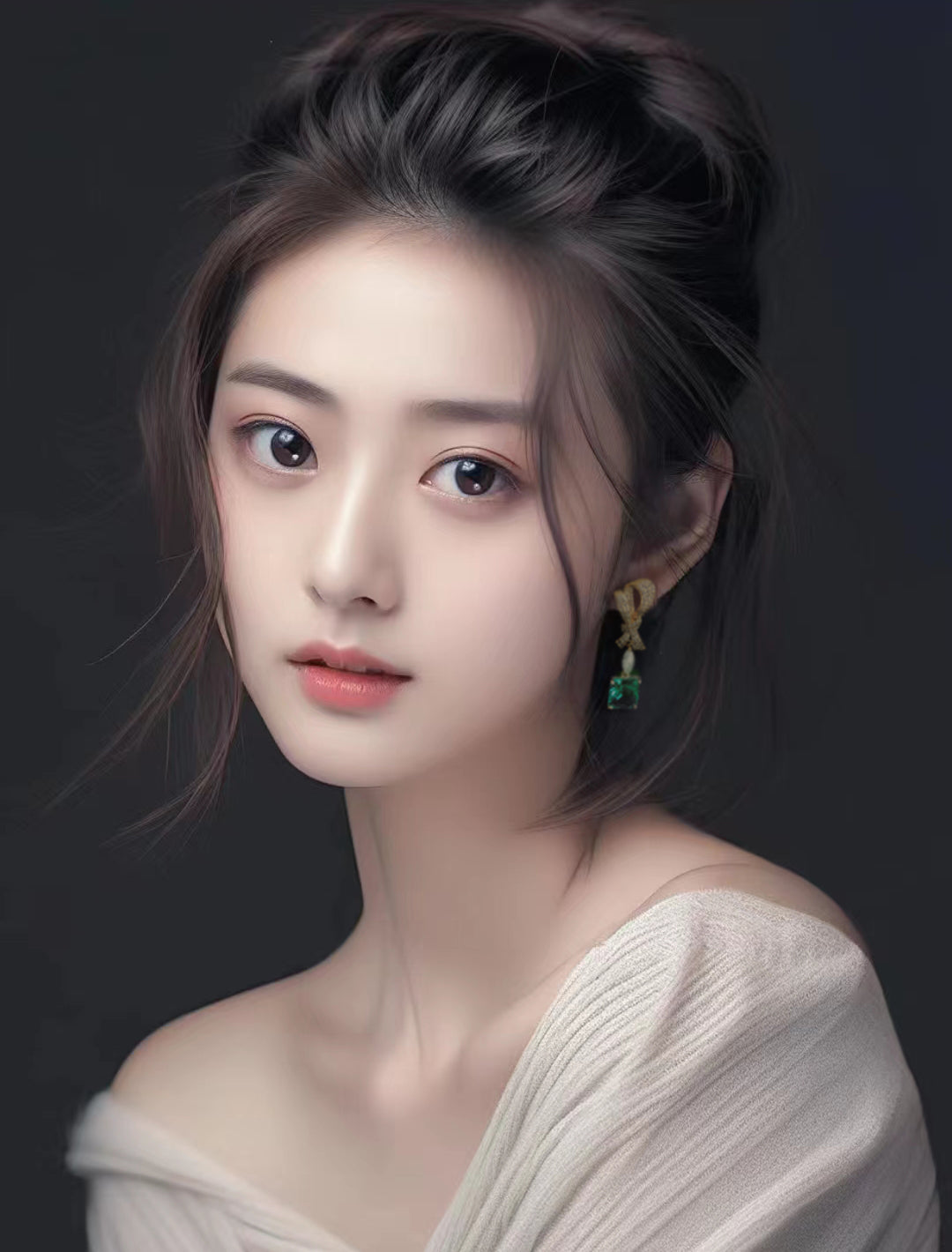 - Earrings with 18K Yellow Gold & Diamond, Green Crystals