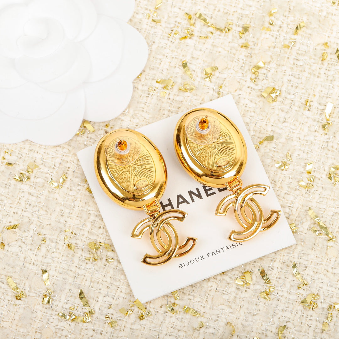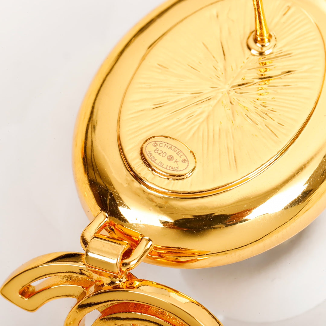 18K CC Black Crystal Pendant Earrings