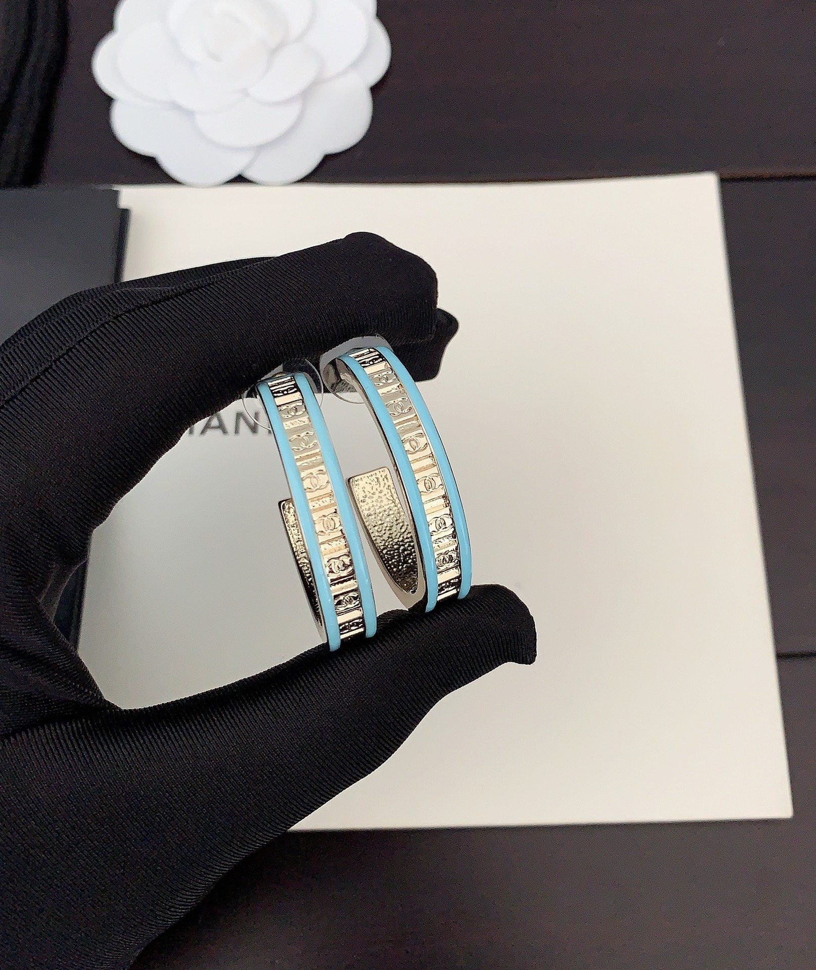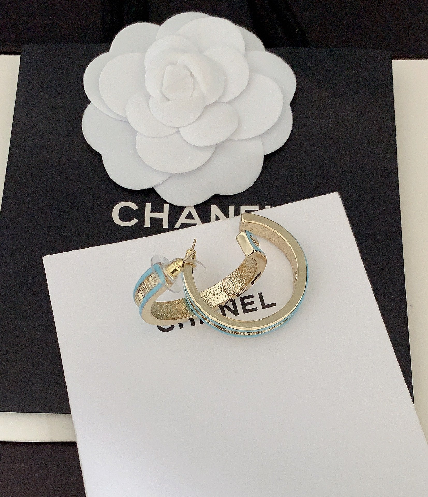 18K CC Blue Resin Earrings