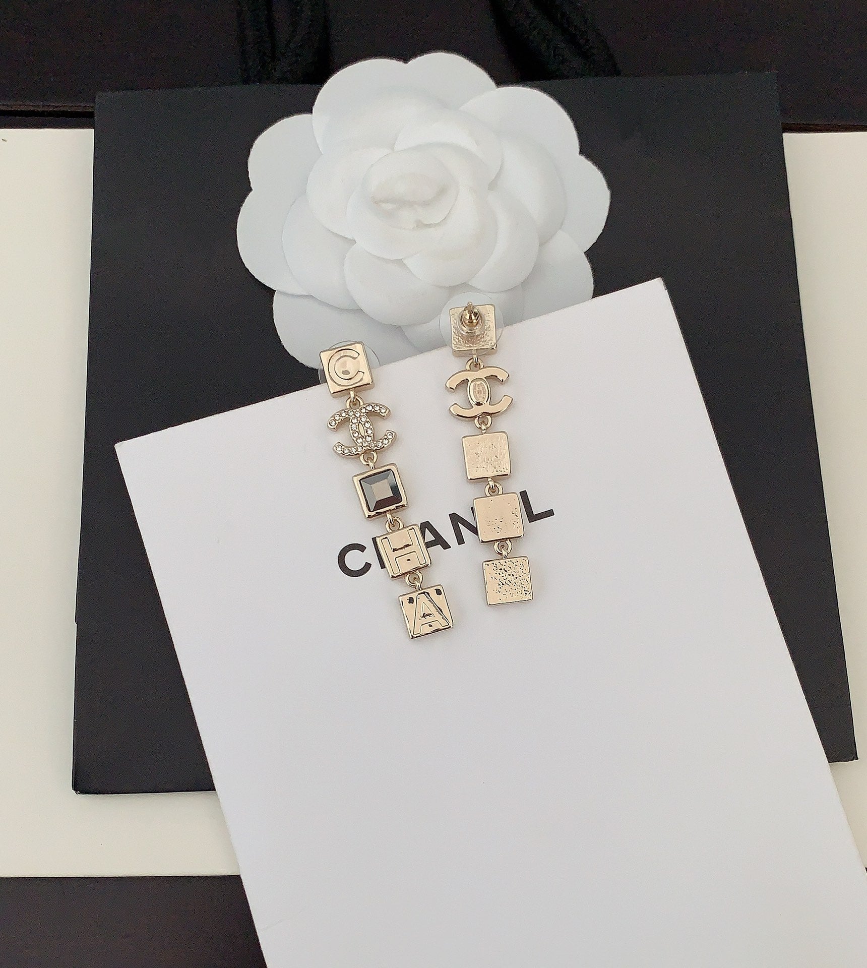 18K CC Crystals Long Earrings