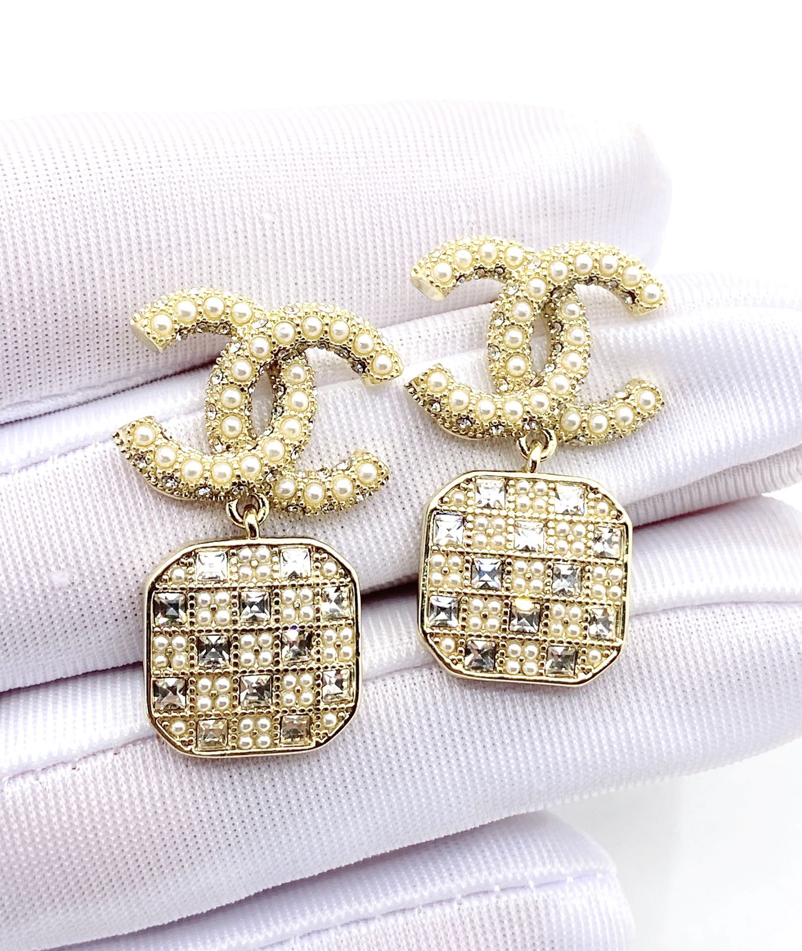 18K CC Diamonds Drop Earrings