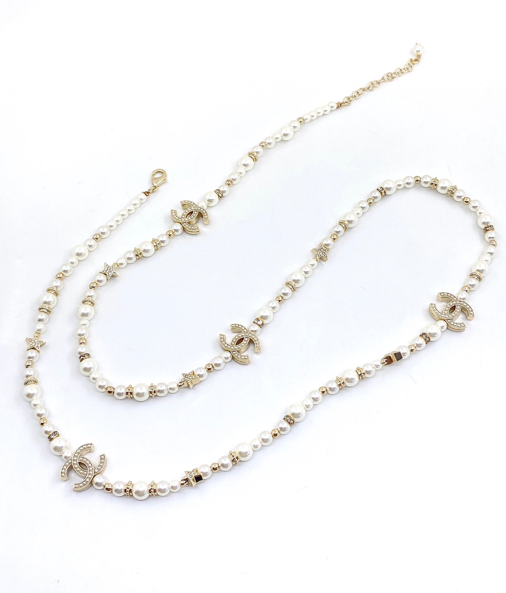 - Yellow Gold-colour hardware, Chain Link & Pearls