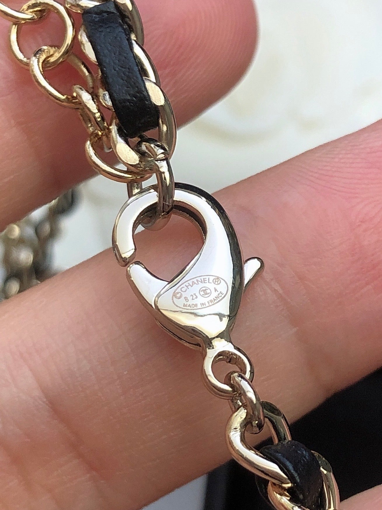 - Yellow Gold-colour hardware, Chain Link & Pink Crystals
