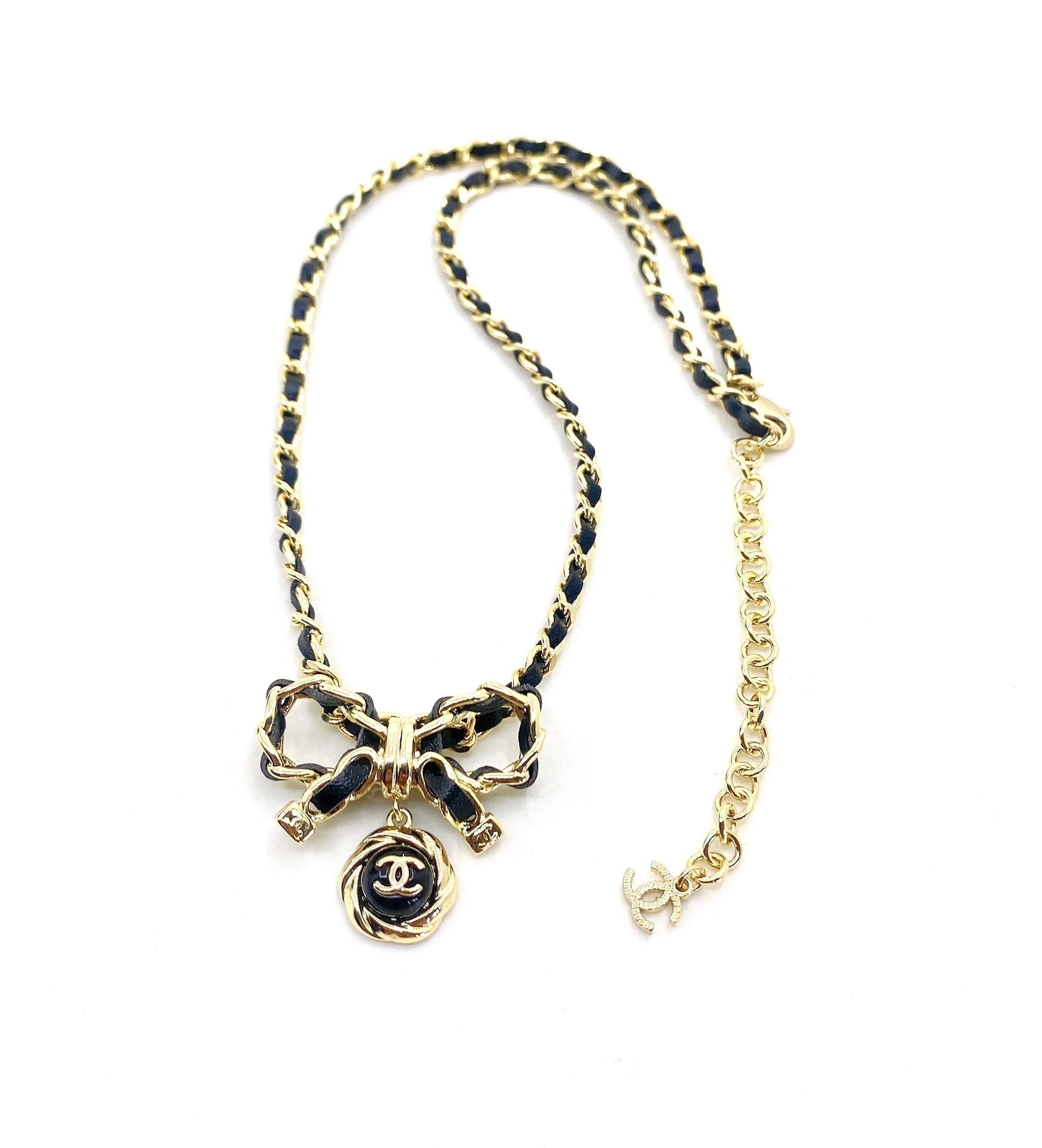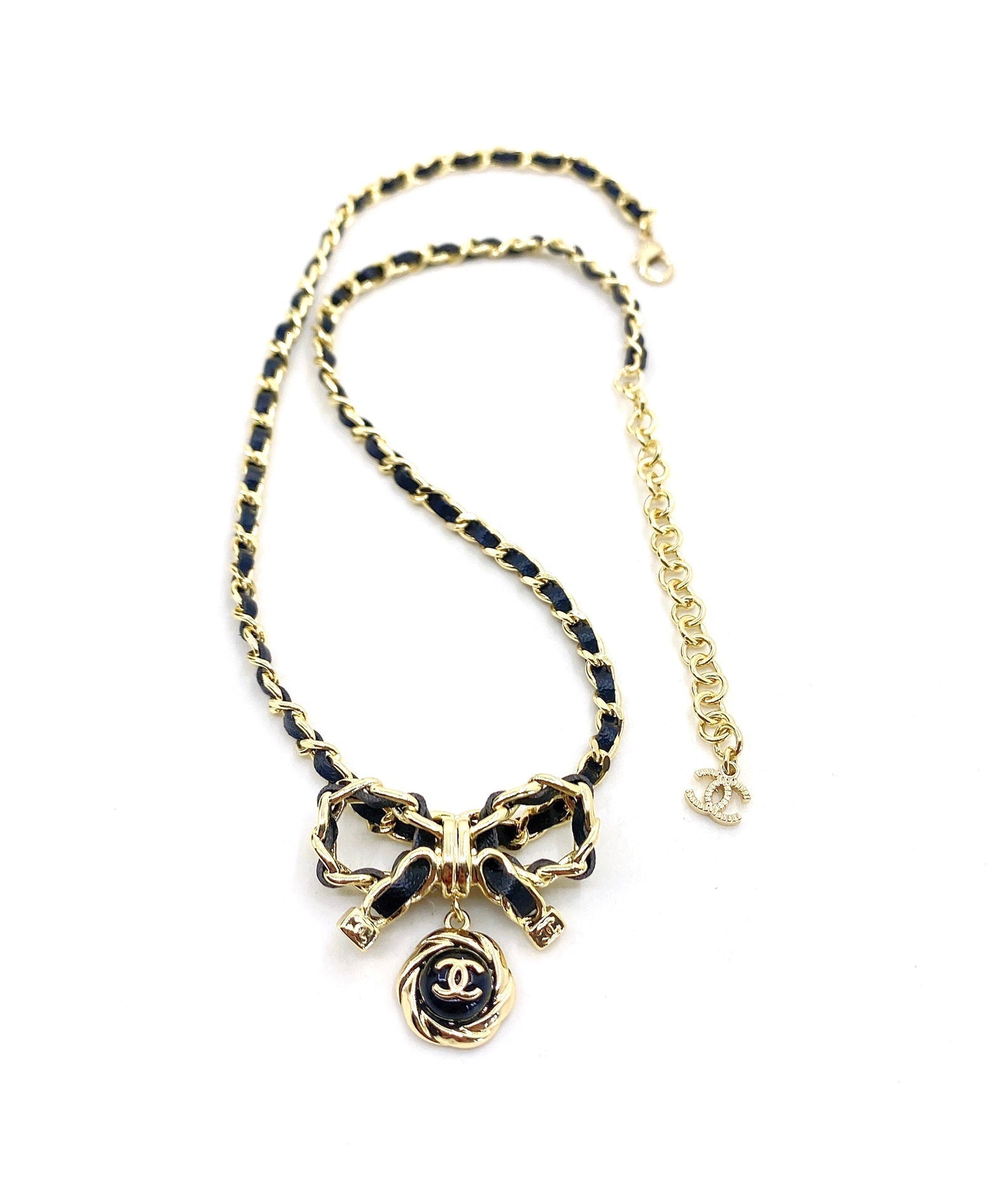 18K CC Rhinestone Bow Tie Necklace