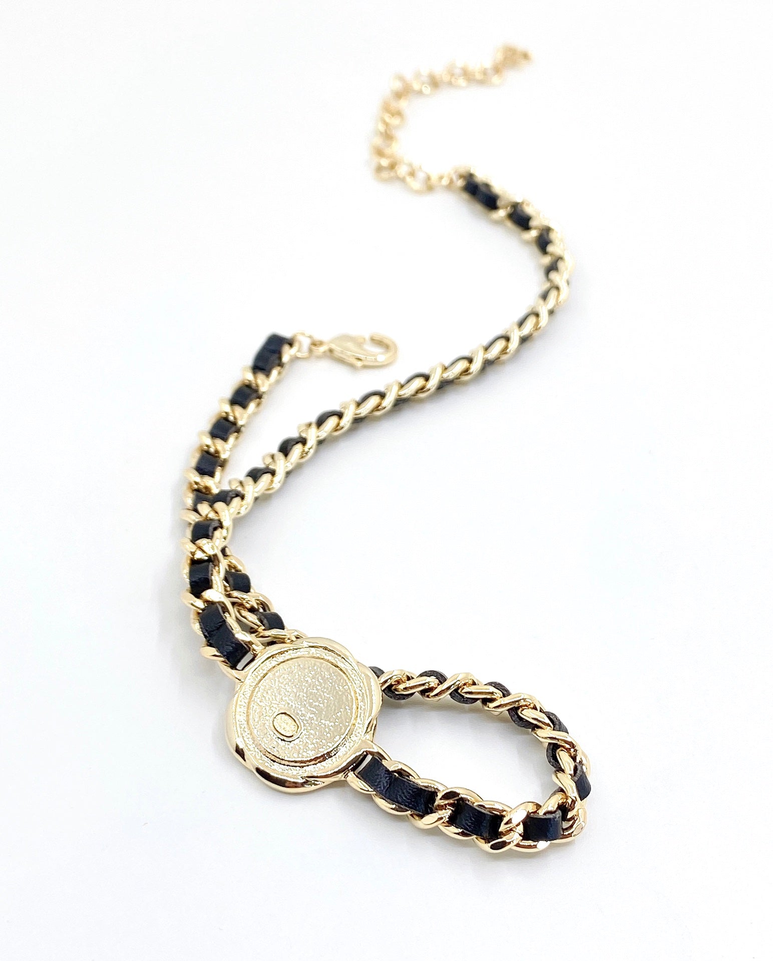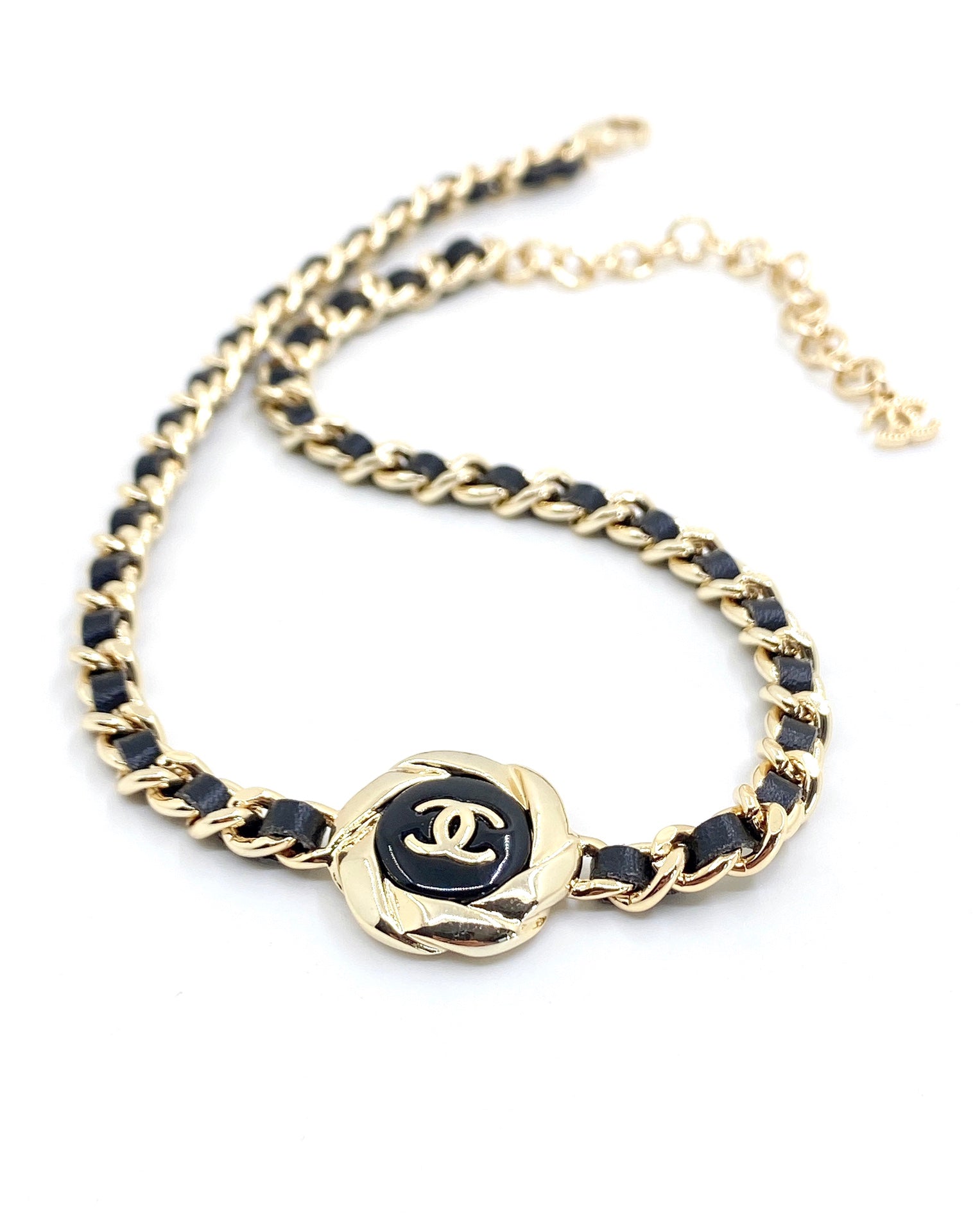 18K CC Rhinestone Leather Choker Necklace