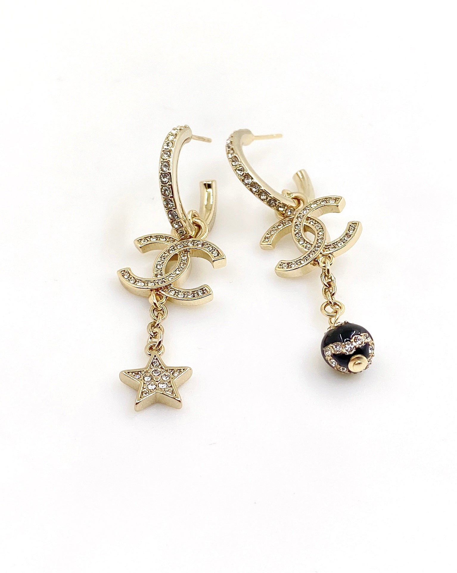 18K CC Star Pearls Pendant Earrings
