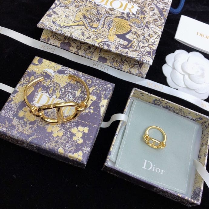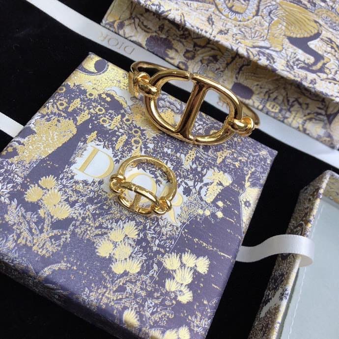 18K CD Navy Logo Bangle Open Cuff Bracelet