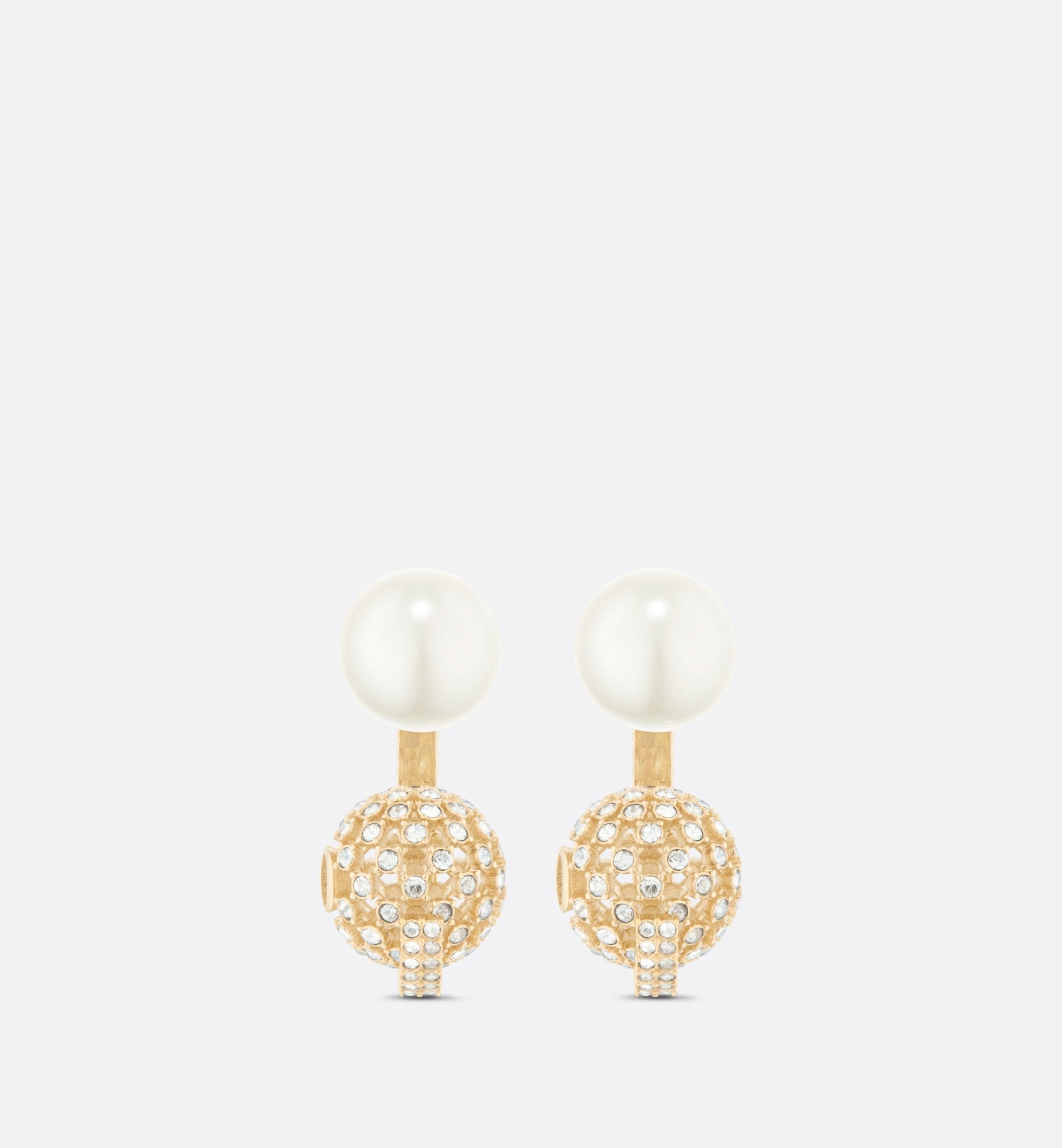 - Yellow Gold-finish metal, White resin pearls, Integrated clasp on the rear pearl