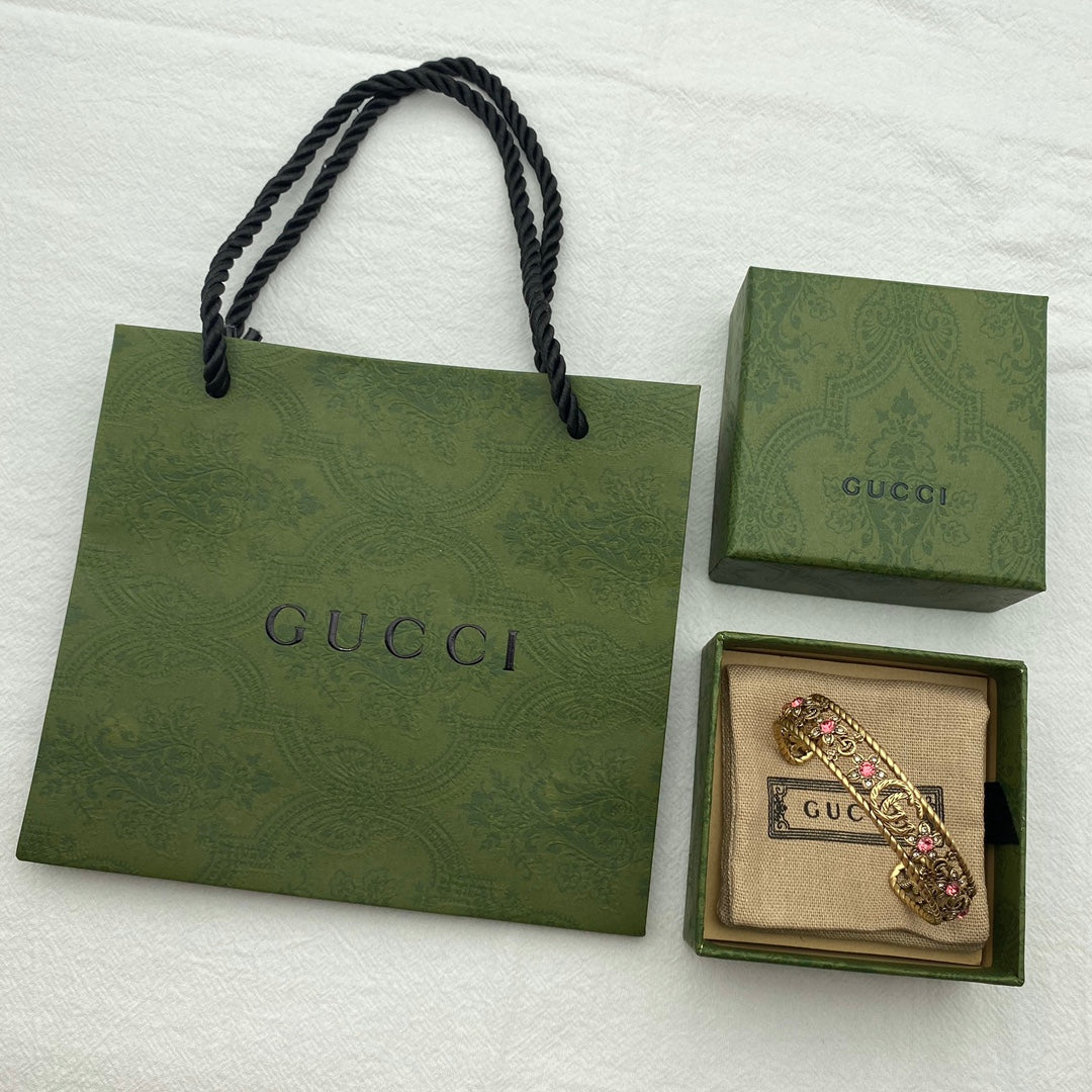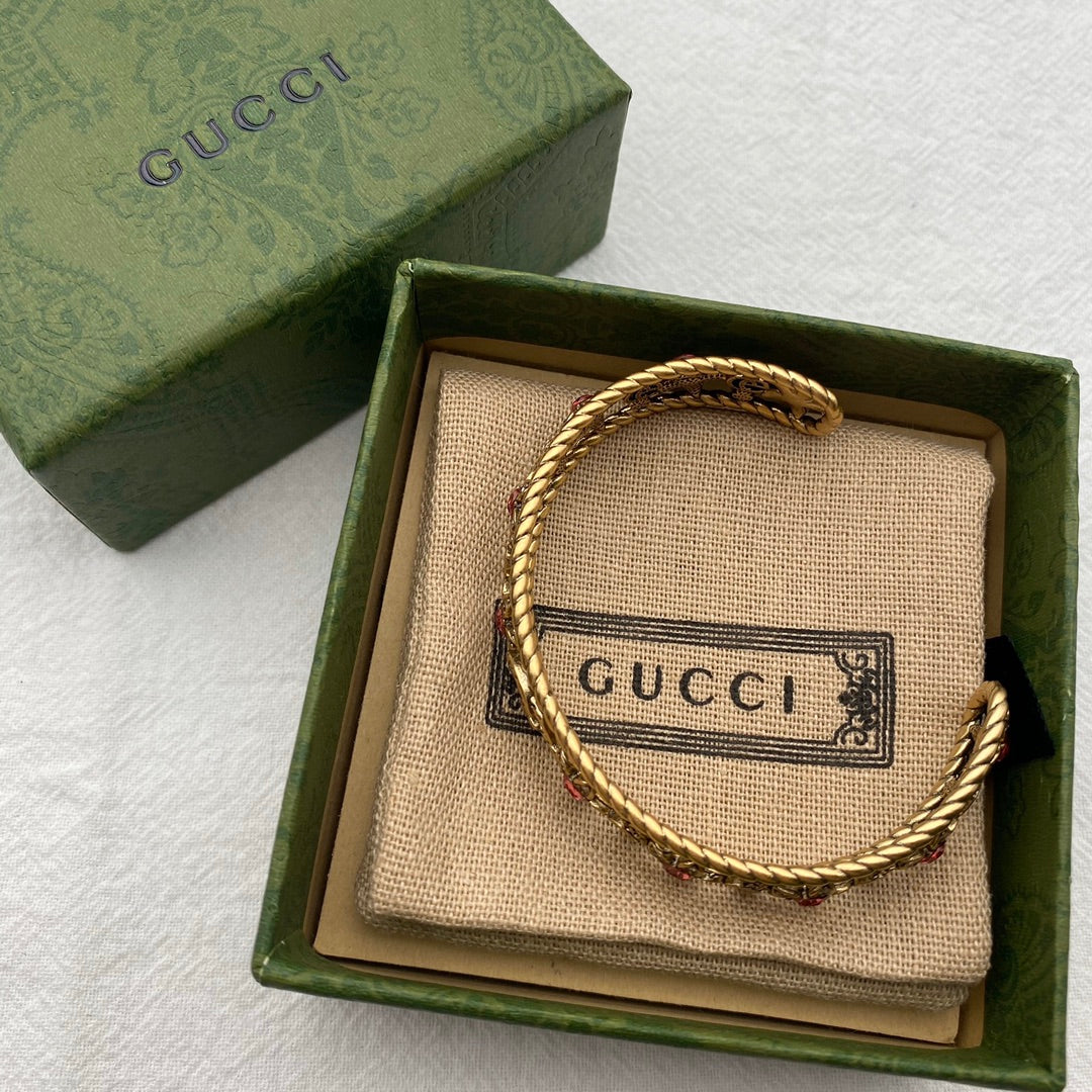 18K Double G Red Crystal Flower Cuff Bracelet