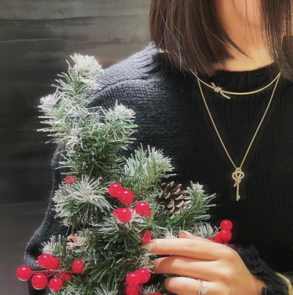 18K T Keys Woven Diamonds Large Necklace